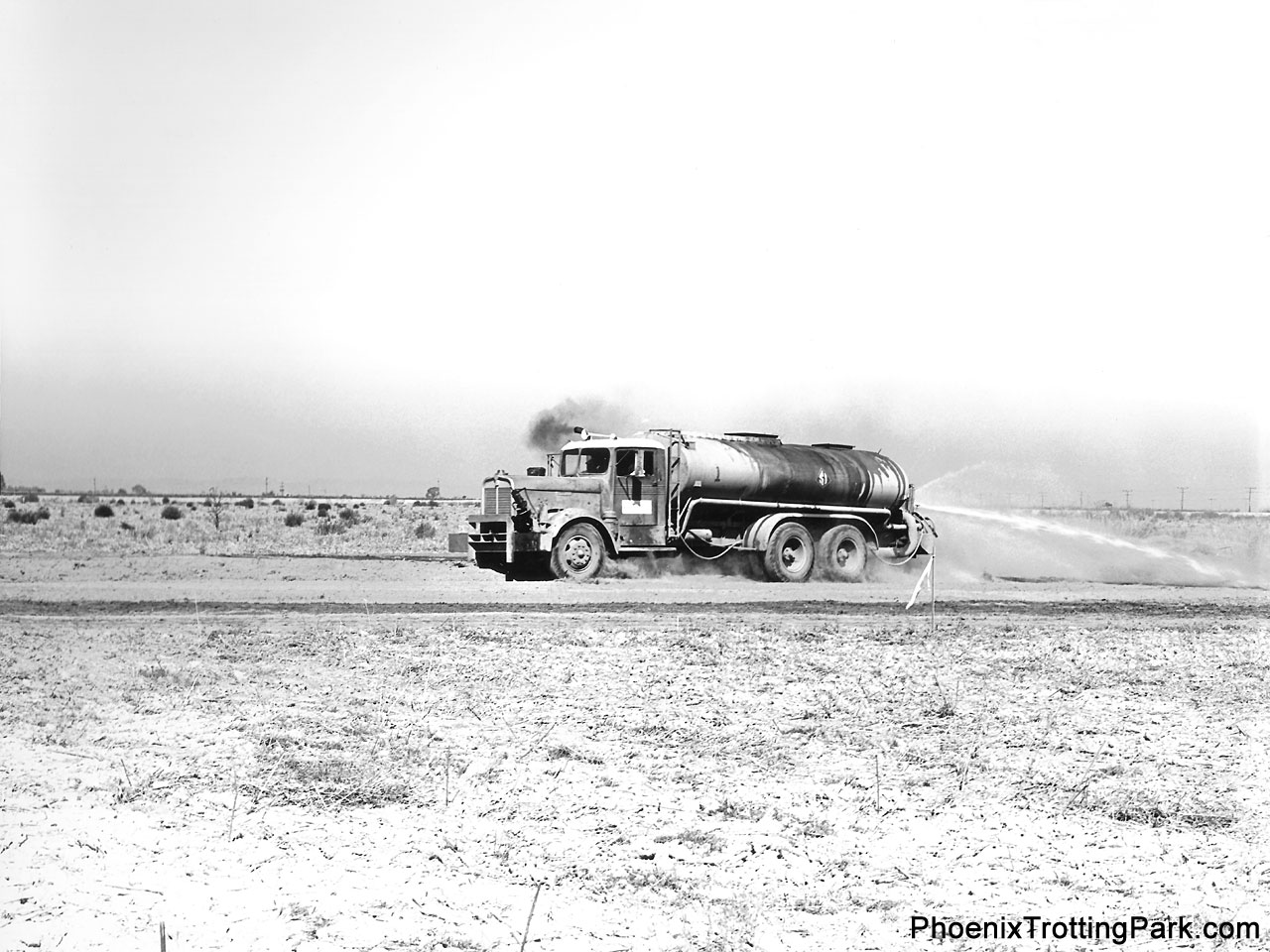 Dump truck with Phoenix Trotting Park visible in the background. The exact date is not known but is estimated to be 1964. Source: unknown.